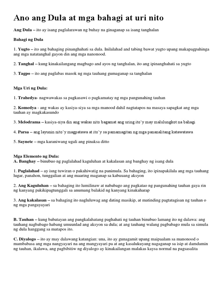 Ano Ang Dula At Mga Bahagi At Uri Nito