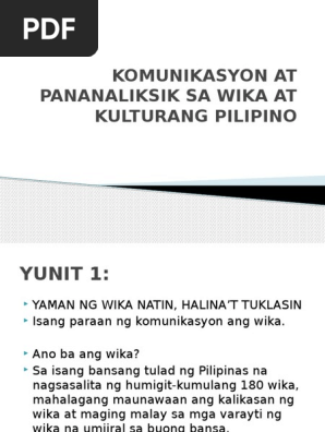 Komunikasyon At Pananaliksik Sa Wika At Kulturang Pilipino